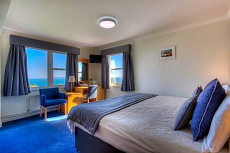 This hotel is set on the cliff top at Jerbourg Point, with breathtaking views over Herm, Sark, Jersey and even France on a clear day. There are 2 restaurants serving fresh local fish, prime char-grilled meats, vegetarian choices and house-specialties. The Cliff Top Coffee Shop with sun terrace serves a selection of homemade cakes, pastries and locally roasted coffee throughout the day. The hotel’s outdoor swimming pool is open from May to September. Petanque is available at the poolside. Hotel Jerbourg is only a step away from picturesque cliff walks, 2 minutes from The Guernsey Literary and Potato Peel Pie Society's La Bouvée Farm, 10 minutes from St Peter Port and within easy access of Guernsey Airport.