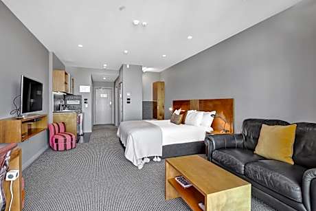 Located in New Plymouth town center, King and Queen Hotel Suites offer luxurious accommodations with free Wi-Fi and a 42-inch plasma TV with cable channels. The property is within 5 minutes’ walk of shops, cafés and restaurants and opposite to the Len Lye / Govett Brewster Art Gallery All accommodations includes a mini-bar. Some offer a fireplace or a private balcony with sea views and a kitchen or kitchenette with a microwave. Boardroom facilities accommodate up to 10 people. Reception can arrange currency exchange and airport transfers and charges apply. All guests receive a free gym pass to Jetts Gym, which is 2 minutes’ walk from the hotel. The Center City Shopping center is 5 minutes’ walk and Fitzroy Beach is 7 minutes’ drive away