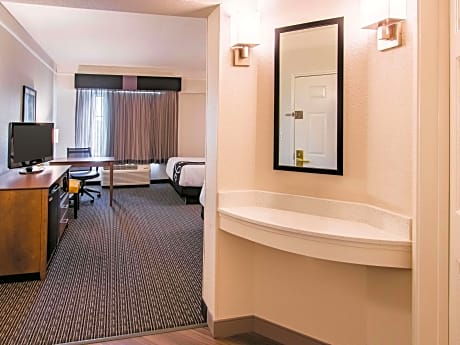 Ubicado a 9,6 km de la Universidad Cristiana de Texas, este hotel de Fort Worth cuenta con piscina al aire libre y habitaciones con wifi gratuito. La Quinta Inn & Suites Fort Worth City View ofrece habitaciones con TV de pantalla plana vía satélite. También hay cafetera en cada habitación. Los huéspedes pueden hacer ejercicio en el gimnasio del hotel y lavar la ropa en la lavandería. Este La Quinta Inn de Fort Worth también cuenta con salas de reuniones para conferencias y eventos sociales. Todos los días se sirve un desayuno continental completo en La Quinta Inn & Suites Fort Worth City View. El menú incluye gofres, cereales, pasteles y fruta fresca. Los huéspedes pueden disfrutar de tiendas, restaurantes y entretenimiento en Sundance Square, a 22,5 km del hotel. El aeropuerto de Sycamore Strip está a 15 minutos en coche.