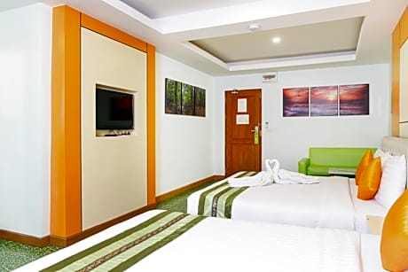 Experience an abundance of unparalleled facilities and features at Lucky Green View Hotel. Maintain seamless communication using the complimentary Wi-Fi at hotel.For visitors traveling by automobile, complimentary parking is available. Reception assistance is offered at the hotel featuring concierge service. For extended visits or whenever required, the dry cleaning service ensures your preferred travel garments remain fresh and accessible.Craving relaxation? Make the most of your stay at the Lucky Green View Hotel with convenient amenities like room service and daily housekeeping at your disposal.For all your minor, last-minute requirements, the convenience stores can promptly cater to them, eliminating the need to venture out. Kindly note that smoking is prohibited in the hotel to ensure fresher air for all visitors. For visitors wishing to smoke, designated smoking zones can be found. At Lucky Green View Hotel, every guestroom is provided with convenient amenities and fittings to ensure a comfortable stay.Enhance your experience at hotel with the knowledge that certain rooms are equipped with linen service, blackout curtains and air conditioning for your convenience.A few accommodations within Lucky Green View Hotel offer unique design elements such as a balcony or terrace.Certain rooms boast in-room amusement features such as television and cable TV, offering guests an enjoyable stay. In select rooms within the hotel, a refrigerator and bottled water is available to cater to your requirements when desired.It is worth noting that certain guest bathrooms feature a hair dryer, toiletries and towels for your convenience. Begin your day with a scrumptious on-site breakfast available each morning at Lucky Green View Hotel. At the hotel, an assortment of easily accessible and delicious meal choices are available to satisfy your appetite whenever it strikes.