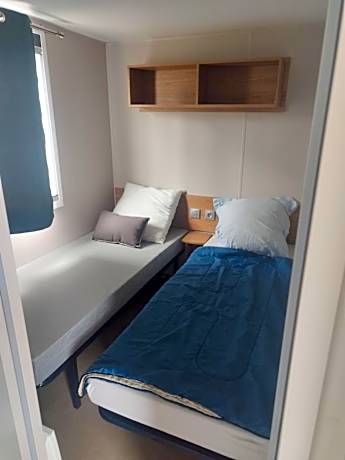 The mobile home has 3 bedrooms and 1 bathroom with a shower and free toiletries. In the kitchenette, guests will find a stovetop, a refrigerator, kitchenware and an oven. Boasting an outdoor dining area, this mobile home also offers a coffee machine, a dining area and a flat-screen TV. The unit has 5 beds.