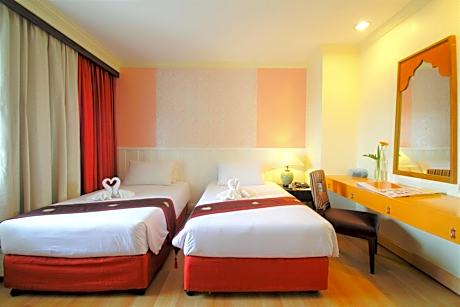 Princeton Bangkok Hotel provides flawless service and all the necessary facilities for visitors.Stay connected with your associates, as complimentary Wi-Fi is available during your entire visit. The hotel offers taxi amenities to assist you in discovering your desired offerings in Bangkok.When arriving by car, you'll be grateful for the on-site complimentary parking at hotel. The hotel offers reception amenities including concierge service and luggage storage to ensure a comfortable stay for guests.Should you require it, the tours can even assist you in booking tickets and securing reservations for the finest shows and events in the vicinity.Your stay will be comfortable with the presence of room service and daily housekeeping as an in-room amenity for your relaxation and enjoyment. To ensure the well-being and convenience of all visitors, smoking is strictly prohibited throughout the entire hotel. Smoking is permitted solely in the specified smoking zones allocated by hotel. In order to ensure the utmost level of relaxation, the guestrooms feature an inviting design and are equipped with all basic necessities, creating a delightful stay experience. To ensure a pleasant stay, a selection of rooms at hotel come furnished with blackout curtains and air conditioning, all designed with your ease in mind.Several chosen accommodations at Princeton Bangkok Hotel have a balcony or terrace incorporated into the room design.In select rooms, visitors can enjoy a touch of amusement with the availability of television, in-room video streaming and cable TV for their entertainment needs.Within specific rooms, a refrigerator, bottled water, a coffee or tea maker and mini bar is conveniently available for your use. Understanding the significance of bathroom facilities in enhancing visitor contentment, hotel offers a hair dryer, toiletries and bathrobes within a few chosen chambers. Start your day stress-free at Princeton Bangkok Hotel as breakfast is made available for you on the premises. How about kicking off each day of your getaway with a delicious cup of coffee? At the hotel, relish in the invigorating taste of a freshly brewed, excellent coffee. Various excellent meal offerings at hotel ensure that enticing and easily accessible options are constantly available.Throughout the day, engage in the entertaining activities available at Princeton Bangkok Hotel. Unwind effortlessly each day by exploring the hot tub, conveniently situated within the hotel. Unwind by the pool at hotel and cherish a leisurely moment. Guests who enjoy maintaining their fitness regimen while on holiday can visit the fitness center provided by hotel. License Number(s): 0105545081681