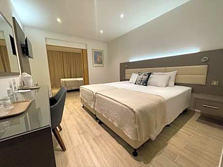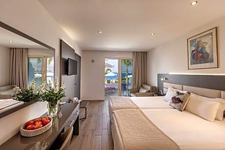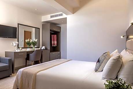 Set on a secluded bay, Queens Bay Hotel features outdoor pools, a padle court and a fitness room with sauna. Its extensive gardens stretch down to the beach. Free WiFi is available in all areas. All guest rooms at Queens Bay Hotel are air-conditioned and equipped with satellite TV, hairdryer and a private bathroom. Queens Bay features a pool terrace offering panoramic sea and sunset views. Guests can also relax in the sauna or try their skills in French Bowls, table tennis and archery. The Cassiopia Restaurant offers a variety of fresh Mediterranean dishes. In the evening, guests can have a drink and enjoy live music entertainment at the hotel’s bar. Hotel Queens Bay is 0.9 mi away from Kissonerga Village and 10 minutes’ driving from Paphos Town. The hotel is half way between the ancient site of The Tombs of the Kings and the popular Coral Bay. Free on-site parking is possible.