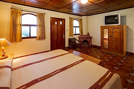 This triple room features 2 double beds and one single extra bed. It has a living area with cable TV. There is also a private bathroom with hot and cold water.