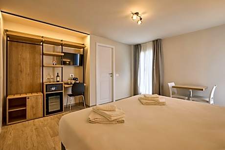 Providing free toiletries, this quadruple room includes a private bathroom with a bath or a shower, a bidet and a hairdryer. The air-conditioned quadruple room provides a flat-screen TV with cable channels, soundproof walls, a mini-bar, a tea and coffee maker as well as city views. The unit offers 3 beds.