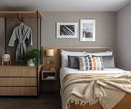 A pied-a-terre, featuring a king size bed. Skandinavisk toiletries, Casper bedding, telephone, hair dryer, complimentary high-speed WiFi and air conditioning and USB charging cable for all smartphones.