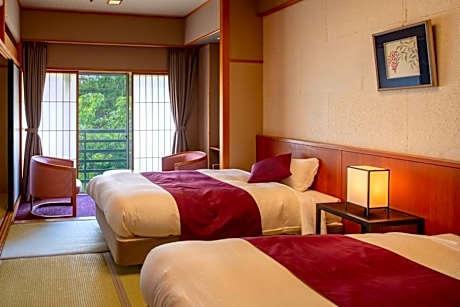 Zazan Minakami provides flawless service and all the necessary facilities for visitors. Stay connected with your associates, as complimentary Wi-Fi is available during your entire visit. When arriving by car, you'll be grateful for the on-site complimentary parking at ryokan.The ryokan offers reception assistance, including luggage storage, to ensure guest satisfaction.Your stay will be comfortable with the presence of room service and daily housekeeping as an in-room amenity for your relaxation and enjoyment.To ensure the well-being and convenience of all visitors, smoking is strictly prohibited throughout the entire ryokan.Smoking is permitted solely in the specified smoking zones allocated by ryokan.In order to ensure the utmost level of relaxation, the guestrooms feature an inviting design and are equipped with all basic necessities, creating a delightful stay experience.To ensure a pleasant stay, a selection of rooms at ryokan come furnished with linen service and air conditioning, all designed with your ease in mind. In select rooms, visitors can enjoy a touch of amusement with the availability of television and cable TV for their entertainment needs.Rest assured, quenching your thirst is not a concern with a refrigerator available in select accommodations. You'll be pleased to know that select guest bathrooms offer bathroom amenities such as toiletries, ensuring a comfortable stay. Start your day stress-free at Zazan Minakami as breakfast is made available for you on the premises.How about kicking off each day of your getaway with a delicious cup of coffee? At the ryokan, relish in the invigorating taste of a freshly brewed, excellent coffee. Upon arrival, make sure to explore karaoke rooms and bar to experience enjoyable evening entertainment within the premises. Throughout the day and night, guests can enjoy light refreshments with the ryokan offering vending machines. Zazan Minakami provides a superb assortment of leisure amenities for guests to enjoy. Unwind and conclude each day delightfully by stopping by massage, spa and sauna, ensuring a soothing experience.