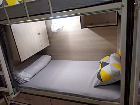 This bed in dormitory has air conditioning, dining area and tile/marble floor.