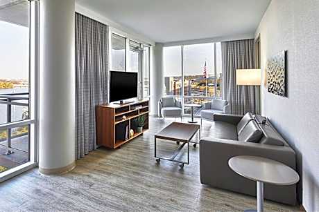 Disfrute de una fusión de decoración moderna y vanguardista en el AC Hotel National Harbor, Washington, D.C. Nuestro hotel encarna la esencia del minimalismo europeo desde el primer momento. Esta atmósfera se integra a la perfección en nuestras habitaciones y suites, donde encontrará comodidades de lujo, ropa de cama de lujo, detalles de diseño, suelos de madera e impresionantes vistas al río Potomac. Mejore su estancia a una de nuestras suites y disfrute de los ventanales. Despierte y disfrute de un desayuno continental en nuestra AC Kitchen antes de embarcarse en un día de aventuras. Visite lugares como el MGM National Harbor, la escultura "El Despertar", Oxon Hill y Fort Washington, Maryland. Después de un ajetreado día explorando, relájese con una copa y unas tapas por la noche en el AC Lounge. Termine el día disfrutando de las vistas en nuestro patio exterior. Si busca una sesión de ejercicio rápida, nuestro gimnasio está abierto las 24 horas. Escápese con estilo al elegir una estancia memorable en el AC Hotel National Harbor, Washington, D.C.