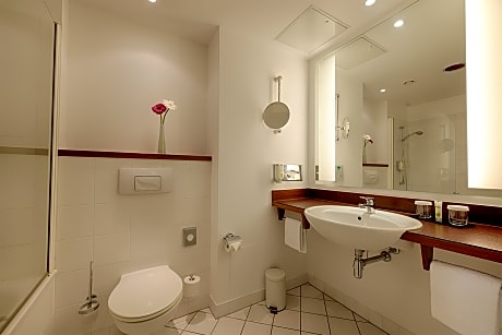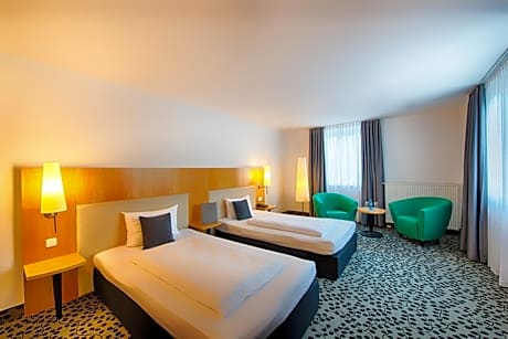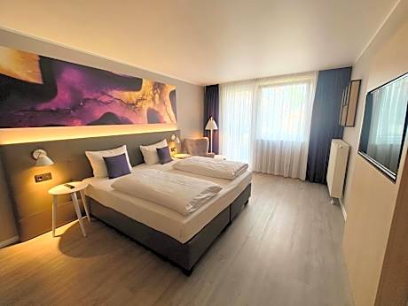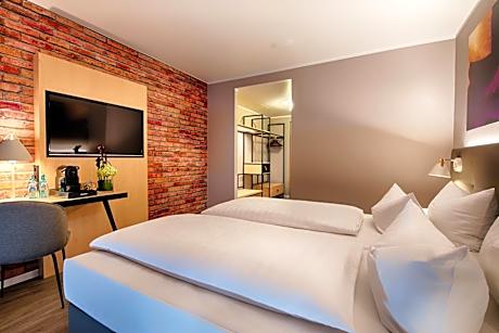A short walk from the center of Offenbach, this hotel offers 24-hour service, modern business facilities and quick connections to the center of Frankfurt. Free WiFi is provided in all areas. There is also a roof terrace with views of Frankfurt's skyline. The Offenbach Plaza Hotel a listed heritage red-brick Gothic-style building in Offenbach's former slaughtering yard. Rooms are equipped with large desk, armchair, and all modern comforts. Restaurant Paul’s will spoil you with light, international cuisine and select wines. The hotel also features a bar. After a long day, relax in the hotel’s spa area or fitness room with its various equipment. The Norwegian sauna is free of charge to guests, and is open from 16:00 until 23:00. The Offenbach Plaza Hotel offers easy access to the A661 motorway and is within walking distance of train and suburban railway stations. Frankfurt’s airport, exhibition grounds and shopping streets can be reached in approximately 15 minutes.
