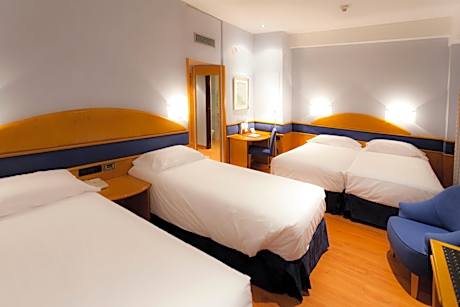 Conveniently located across from central Madrid's Atocha Station, Hotel Agumar Atocha is under a 10-minute walk from the Prado, Thyssen and Reina Sofía Museums. It has simple, air-conditioned rooms with satellite TV and free Wi-Fi. A breakfast buffet is served in the Piano Room at Agumar Atocha, including fresh fruit and hot dishes. Las Arenas restaurant serves Mediterranean cuisine and light meals are available at the cafeteria throughout the day. The rooms feature a marble bathroom equipped with a bathrobe and hairdryer. They also have a safe and a selection of pillows. Atocha Train Station is 320 yards away, with a high-speed AVE service and services to Barajas Airport. Madrid’s beautiful Retiro Park is also close to the Agumar Atocha Hotel.