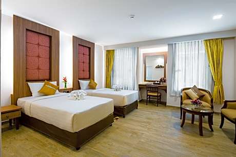 Aiyara Palace Hotel provides flawless service and all the necessary facilities for visitors. Maintain seamless communication using the complimentary Wi-Fi at hotel. Effortlessly arrange transportation to and from the airport using the hotel's airport transfer services. Discovering Pattaya becomes even more accessible through the taxi and shuttle amenities provided at the hotel.For visitors traveling by automobile, complimentary parking is available.During your stay at this fantastic hotel, the attentive front desk personnel can provide you with a range of amenities such as concierge service, express check-in or check-out, luggage storage and safety deposit boxes. In search of city's top entertainment, seek assistance at the hotel's ticket service and tours for reservations. At the hotel, utilize the on-site dry cleaning service and laundry service to maintain your beloved travel attire fresh, allowing you to bring fewer clothes. Craving relaxation? Make the most of your stay at the Aiyara Palace Hotel with convenient amenities like 24-hour room service, room service and daily housekeeping at your disposal. Kindly note that smoking is prohibited in the hotel to ensure fresher air for all visitors. For visitors wishing to smoke, designated smoking zones can be found. At Aiyara Palace Hotel, every guestroom is provided with convenient amenities and fittings to ensure a comfortable stay.Enhance your experience at hotel with the knowledge that certain rooms are equipped with linen service, blackout curtains and air conditioning for your convenience. A few accommodations within Aiyara Palace Hotel offer unique design elements such as a balcony or terrace. Certain rooms boast in-room amusement features such as television, in-room video streaming and cable TV, offering guests an enjoyable stay. In select rooms within the hotel, a refrigerator, a coffee or tea maker, bottled water, instant coffee and mini bar is available to cater to your requirements when desired.In the hotel, certain guest bathrooms come equipped with essential bathroom amenities, such as a hair dryer, toiletries and bathrobes, ensuring a comfortable stay for guests. Be sure to stop by the elegant executive lounge where you can experience the lavish amenities and ambiance. Begin your day with a scrumptious on-site breakfast available each morning at Aiyara Palace Hotel.Begin your day feeling refreshed and invigorated as you enjoy a delightful cup of quality coffee available at the cafe situated within the hotel.At the hotel, an assortment of easily accessible and delicious meal choices are available to satisfy your appetite whenever it strikes.Create unforgettable moments with your fellow voyagers just steps away, at hotel's bar and nightclub, for a delightful evening together.At the hotel, discerning guests can also enjoy on-site culinary facilities like shared kitchen tailored to their preferences. At Aiyara Palace Hotel, guests can take pleasure in the delightful recreational amenities provided for their entertainment. During your stay, don't forget to allocate some moments to experience the readily available shoreline. Conclude your holiday perfectly with a visit to hot tub, steam room and sauna on your final days. Be sure to drop by the pool at hotel at least once during your stay.At Aiyara Palace Hotel, utmost care is taken to ensure guests' comfort. Relish your preferred beverage in your swimwear by the hotel's poolside bar.Discover the fitness amenities at hotel to maintain your health and strength during your getaway.