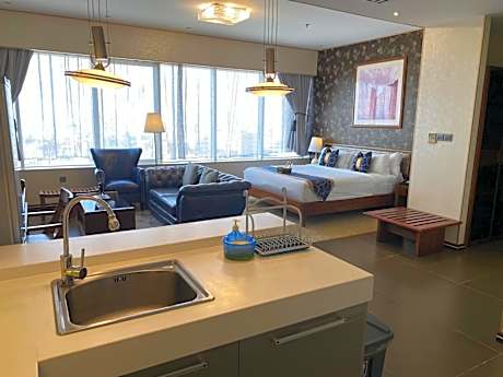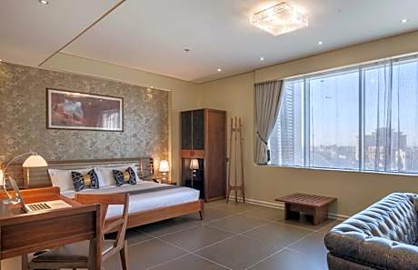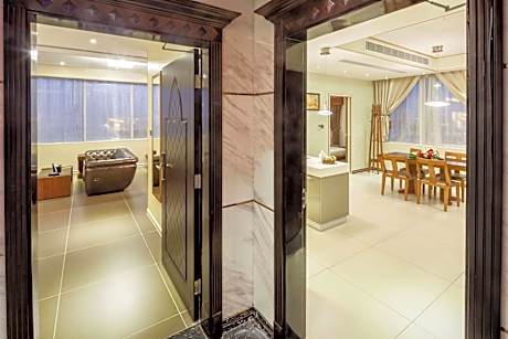 The five-star hotel is located in the heart of Al Ahsa, opposite King Faisal University, and is surrounded by the most famous local and international restaurants such as TGI Fridays, McDonald's, Hardee's, and KFC's more than 20 international and local restaurants. The hotel features elegant suites with a classic feel of comfort, luxurious multi-use halls, indoor swimming pool, high-speed fiber optic internet access all over the place, a health club for men and women, sauna and Hot tub. Every morning we will welcome you to a varied breakfast buffet at Al Ahsa's 11th floor restaurant, Al Nakheel Restaurant. We will also offer you a variety of international dishes for lunch and dinner as well as our prepared ice cream buffet. You can also relax in the lobby and enjoy your favorite coffee from Pro Café. We offer you free private parking as well as a paid delivery service to take you anywhere in Al Ahsa city. You will find all the staff happy to serve you and help you at any time.
