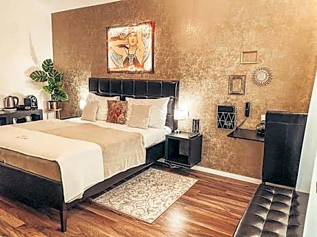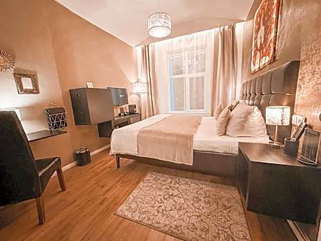 Alfons Boutique Hotel in Prague, a 10-minute walk from Wenceslas Square and Prague National Museum and offers free WiFi and designed rooms with art work. The hotel features a garden and a terrace. The hotel's cozy rooms are equipped with a flat smart TV with access to the internet. All rooms come with a coffee machine and a private bathroom with a shower, while certain rooms come with a kitchenette. Guest rooms have a wardrobe and safety box. A continental breakfast is available every morning at the property. Hiking is among the activities that guests can enjoy near Alfons Boutique Hotel. Alfons Boutique Hotel is located across the road from the closest metro stop. Prague Astronomical Clock is 1.1 mi from the accommodations, while Vaclav Havel Airport is a 30-minute drive from the property.