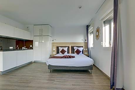 All Suites Choisy Le Roi is 12 mi from Paris. All Suites Choisy Le Roi features a terrace and a sauna, Marne-la-Vallée is 16 mi from the property. Free WiFi is offered throughout the property and private parking is available on site. The accommodations features a flat-screen TV. Some units feature a terrace and/or balcony. There is also a kitchenette, equipped with a microwave, toaster and fridge. A stovetop and kettle are also available. There is a private bathroom with free toiletries in each unit. Towels are provided. All Suites Appart Hotel also includes a fitness center. Versailles is 16 mi from All Suites Choisy Le Roi, while Villepinte is 31 mi away. The nearest airport is Paris - Orly Airport, 4.3 mi from All Suites Choisy Le Roi.