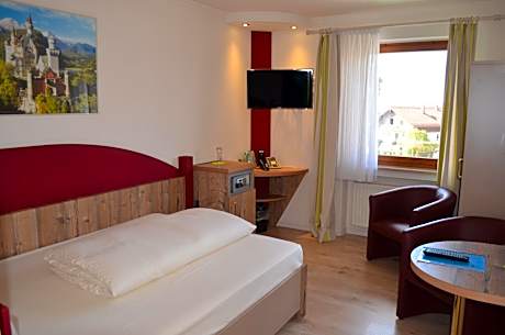 Offering free Wi-Fi and a sun terrace, this hotel is quietly located in the Ostallgäu district of Bavaria. It features a restaurant serving regional specialties, and each room has a flat-screen TV. An e-charging station is available for the hotel guests. (Please inform a hotel employee before arriving, in case you're planning to use the e charging station) The bright, modern rooms at Alpchalet Schwanstein come with a refrigerator and an electric kettle. Toiletries and a hairdryer are provided in the private bathroom, and wheelchair accessible rooms are available. Bavarian and international cuisine is offered in the traditional-style Alpchalet restaurant, with a buffet breakfast provided each morning. The Buchenbergbahn Mountain Railway is a 5-minute walk from the hotel, and Illasbergsee Lake is 3.1 mi away. The historic Neuschwanstein and Hohenswangau Castles can be reached by car within 12-minutes. The A7 motorway is a 20-minute drive from Alpchalet Schwanstein, and free private parking is available.