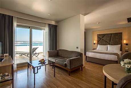 Altın Yunus Hotel & Spa- Çeşme offers top-notch services and amenities, ensuring guests experience utmost comfort. Complimentary internet access is available in the resort to ensure you stay connected during your visit. Arrange your trips to and from the airport using the resort's convenient transportation services booking. Amenities at car hire offered by Altın Yunus Hotel & Spa- Çeşme simplify the organization of your excursions, tourist activities, and other adventures in Cesme.Complimentary parking is available for guests. Continuously receive the support you require through front desk amenities such as luggage storage and safety deposit boxes. At the resort, their tours can even assist you in booking tickets and securing reservations for leisure activities and adventures. Always look your best in your preferred attire with the dry cleaning service and laundry service provided at Altın Yunus Hotel & Spa- Çeşme.Craving relaxation? In-room amenities such as 24-hour room service, room service and daily housekeeping allow you to maximize your time spent inside the room.For the health and well-being of all guests and staff, smoking is restricted exclusively to assigned zones. Accommodations come equipped with all the conveniences required for a restful night's slumber.A selection of rooms feature linen service and air conditioning to ensure your comfort and convenience.A few accommodations at Altın Yunus Hotel & Spa- Çeşme also include unique design elements like a balcony or terrace.A few chosen rooms are equipped with television and cable TV to ensure guest amusement.In certain chosen rooms, mini bar is conveniently available for your use. Altın Yunus Hotel & Spa- Çeşme offers a hair dryer, toiletries and bathrobes in the restrooms of specific accommodations. A delightful breakfast is the perfect way to begin your day, and at Altın Yunus Hotel & Spa- Çeşme, you can always indulge in a scrumptious meal on-site. Allow your journey to be free from the pangs of hunger! On-site eateries offer delicious and accessible meal choices.An evening spent at resort's bar can offer as much enjoyment as venturing out with your fellow travelers.Altın Yunus Hotel & Spa- Çeşme provides a superb assortment of leisure amenities for guests to enjoy. At the resort, a truly unique characteristic is the private beach that grants immediate sea entry solely for its valued visitors.Conclude your days in complete tranquility by paying a visit to massage, spa and sauna for ultimate relaxation.At Altın Yunus Hotel & Spa- Çeşme, a wide array of amenities guarantees a fulfilling experience throughout your visit. Make your holiday truly memorable by taking a rejuvenating plunge into the pool. At the resort fitness center, you have the option to engage in your daily exercise routine or simply alleviate your jet lag by breaking a sweat.