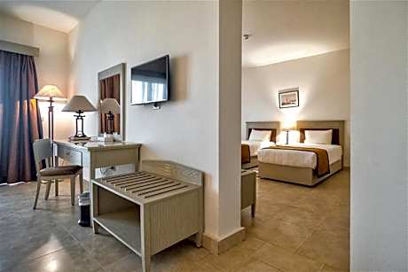 Facing the beachfront, Amarina Queen Resort & Aqua Park Marsa Alam offers 5-star accommodations in Marsa Alam City and features a garden, private beach area and shared lounge. Among the facilities of this property are a restaurant, room service and a 24-hour front desk, along with free WiFi. The resort has an outdoor swimming pool, fitness center, karaoke and a kids' club. The resort will provide guests with air-conditioned rooms offering a desk, an electric tea pot, a minibar, a safety deposit box, a flat-screen TV, a terrace and a private bathroom with a shower. Amarina Queen Resort & Aqua Park Marsa Alam has some accommodations with sea views, and rooms come with a balcony. The rooms have a closet. A buffet breakfast is available at the accommodation. Amarina Queen Resort & Aqua Park Marsa Alam has a playground. You can play pool, table tennis and darts at the resort, and car rental is available. Marsa Alam International Airport is 27 miles from the property, and the property offers a paid airport shuttle service.