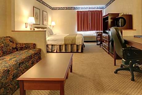 Located in St. Charles, Missouri, this hotel is less than a one mile walk from Ameristar Casino. It features an indoor pool and gym while rooms include free Wi-Fi. The property serves a full hot breakfast buffet. At the Americas Best Value Inn and Suites Saint Charles, every room provides a coffee maker. Guests can watch cable TV with HBO or listen to the radio in each room. Free local telephone calls can be made from the rooms. Lindenwood University is less than 2 miles from the St. Charles Americas Best Value Inn. The Verizon Wireless Amphitheater St. Louis is 6 miles from the hotel.