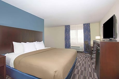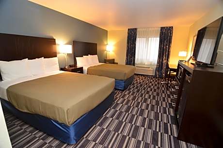 AmericInn by Wyndham Mount Pleasant is located in Mount Pleasant. With free WiFi, this 2-star hotel has a fitness center and a garden. The hotel has an indoor pool and a 24-hour front desk. All guest rooms come with air conditioning, a flat-screen TV with satellite channels, a fridge, a coffee machine, a shower, free toiletries and a desk. The rooms are equipped with a private bathroom with a hairdryer, while certain rooms also offer a balcony and others also have pool views. All rooms feature a closet. A business center and vending machines with snacks and drinks are available on site at the hotel. Southeast Iowa Regional Airport is 29 miles from the property.