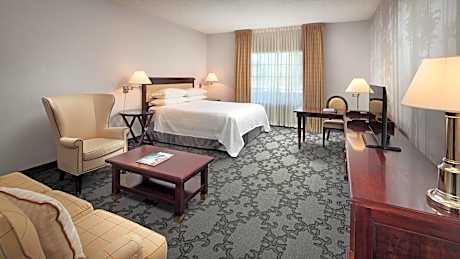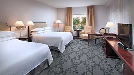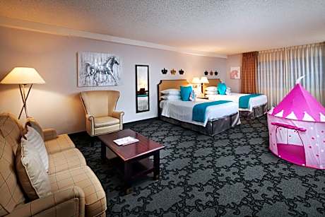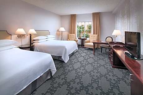 Offering a free shuttle to the adjacent Disneyland and California Adventure theme parks (less than1.3.1 mi away), Anaheim Majestic Garden Hotel features 2 on-site restaurants. All guest rooms feature a flat-screen TV. Each room is equipped with a refrigerator and coffee maker. All modern rooms are warmly decorated with dark wood furniture and include a work desk and safety deposit box. Accessible rooms with roll-in showers, grab rails and shower seating is provided as well. Free access to the gym, outdoor whirlpool and outdoor pool is provided to all guests of Anaheim Majestic Garden Hotel. The hotel has a games room with billiards and arcade games and a business center offering free WiFi. The property offers accessibility features including a pool elevator, hot tub elevator and accessible paths throughout the property. The Garden Court Bistro and Bar at the Anaheim Majestic Garden Hotel serves American cuisine and cocktails. California Deli offers sandwiches and salads. HG Miller Golf Course is just 4 miles from the hotel. Bowers Museum of Cultural Art is 5.5 miles away.