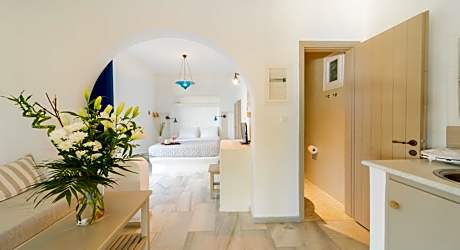 In the village of Agia Anna, Antonina Hotel is a typical Cycladic-style complex featuring a swimming pool and grounds with palm trees and bougainvilleas. Its units open out to furnished balconies or patios. The air-conditioned studios and apartments at Antonina offer views of the Aegean Sea or the lush gardens. They include a kitchen or kitchenette, satellite TV and private bathroom with hairdryer. The stone-paved terrace around the swimming pool features lounge chairs and sun umbrellas, as well as a shaded sitting area. The beach of Agia Anna is just 85 yards away. The famous Agios Prokopios Beach with its many beach bars is less than a 10 minute walk away. Near Antonina, there is a bus stop connecting to Naxos main town, which is 4 miles from the property. Free parking is available on site.