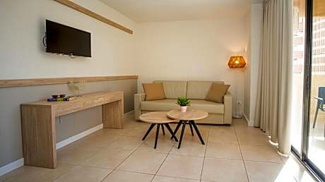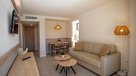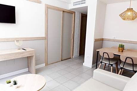 This enchanting apartment complex boasts an idyllic situation in Rincon-de-Loix area of the lively city of Benidorm, just a few minutes' walk from a long sandy beach. Travellers will find themselves close to a wide choice of bars, shops and restaurants, while Alicante Airport is some 65 kilometres away. Spread over 16 floors, the 2-bedroom apartments include private balconies, fully-equipped kitchens as well as a complete bathroom for guests to feel right at home. The complex offers a cosy café-bar where to enjoy nice moments with the family after a busy day of sightseeing as well as a sparkling outdoor swimming pool where to take a refreshing dip in the warmer summer days. Sun loungers and umbrellas are also available for visitors' convenience. : For reservations with half board, full board, or all-inclusive rates, meals and beverages will be served at one of our buffet restaurants— either at Hotel Dynastic & SPA**** or Hotel Gala Placidia***sup. The specific restaurant will be assigned by reception at the time of the guest’s check-in, based on availability at that moment. Please note that transportation between the hotels is at the guest’s own expense.