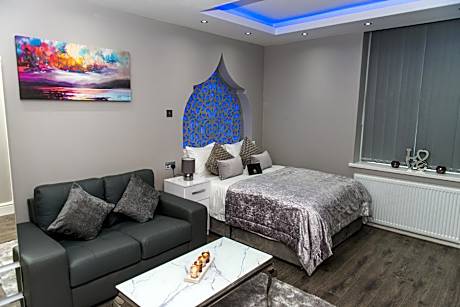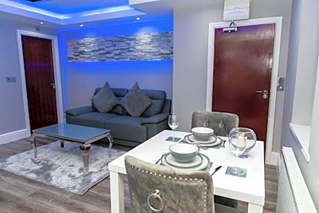 Aphrodite Suites Huddersfield offers accommodations in Huddersfield, 7.3 miles from Victoria Theatre and 15 miles from Belle Vue. This 5-star apartment offers free Wifi. Leeds Town Hall is 18 miles away, and First Direct Arena is 18 miles from the apartment. The accommodation comes with a fully equipped kitchen with a microwave and kettle, a TV, and a private bathroom with hot tub and shower. In colder months, guests can warm up by the in-room fireplace. At the apartment complex, units are equipped with bed linen and towels. You can play billiards, table tennis and squash at the apartment, and the area is popular for cycling and hiking. White Rose Shopping Centre is 17 miles from Aphrodite Suites Huddersfield, while Trinity Leeds is 18 miles from the property. Leeds Bradford International Airport is 19 miles away.