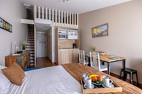 Featuring a swimming pool with sun loungers, Appart'hotel Perle de Ré is a residence located only a 2-minute walk from the beach on the Ile de Ré, and withing walking distance from the city center, restaurants and shops. Flat-screen TVs are provided in the air-conditioned accommodations. Each guest room and apartment has a modern decoration with parquet flooring. Some of the apartments have views of the pool, and the private bathrooms include a hairdryer. A continental breakfast is available every morning at the Appart'hotel Perle de Ré residence. The kitchenettes in the apartments include a microwave, refrigerator and hot plates. The harbor in Saint-Martin-de-Ré is a 10-minute drive from this residence and private parking is available on site. There is a thalassotherapy center 6.2 mi away and free Wi-Fi access is available in the hotel's reception.