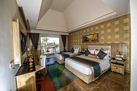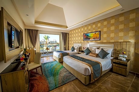 Perched on the cliff of Ras Om El Seid, this fantastic hotel is built within the Aqua Park City, which is a famous water theme park in Sharm el Sheikh that includes a long promenade with many cafés, restaurants and bazaars. The property is ideally located at only 15 minutes from the city centre and 25 minutes from Sharm el-Sheikh International Airport. Guests can choose between different accommodation options, such as standard rooms, family rooms and cosy bungalows, surrounded by beautiful lagoons. All of them are stylishly decorated with warm colours and are comfortably equipped to make visitors feel like home. The resort offers several dining options that will satisfy all tastes, from local to international specialities. Adults and children will enjoy the numerous activities that they can find at and around the hotel, including horseback riding, a nightly entertainment program and a kids club.