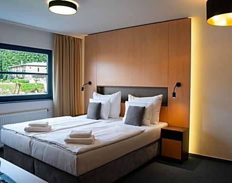 Located in the heart of the Krkonoše National Park, Resort Špindl is right next to the Medvědín Ski Resort. It offers ski-to-door access and features an indoor water adventure park. Free WiFi is available in the restaurant. All rooms offer views of the surrounding forests and ski slopes. They come with a TV and a refrigerator, and have a private bathroom with a shower. The property includes 9 buildings, including a restaurant serving a buffet breakfast and Czech and international cuisine. The Špindlerův Mlýn Aqua Park features a pool, 2 hot tubs, a wild river, 2 water slides and a water boat slide, as well as sauna and steam bath facilities and massage treatments. Guests can also enjoy outdoor activities on site, among all mini golf, table tennis and badminton. A trampoline and a playground are available for children, and bike rental and ski rental is offered. A free ski bus stops in front of the property and goes to the center of Špindlerův Mlýn 5 minutes away, as well as to the Svatý Petr Ski Resort 3.1 mi away. Parking is available on site free of charge.