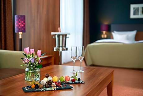 Tenga en cuenta que debido a un evento en la ciudad de Erfurt el 24 de junio de 2025, que tendrá lugar en Theaterplatz, frente al Hotel Dorint, de 15:30 a 20:30, podría haber restricciones de acceso al hotel. Este hotel se encuentra en pleno centro histórico de Erfurt, a 4 minutos a pie de la Catedral. El Dorint Hotel am Dom Erfurt ofrece elegantes habitaciones y una zona de spa. Las amplias habitaciones del Dorint Hotel am Dom Erfurt presentan una decoración moderna, tejidos de alta calidad e iluminación tenue. Todas las habitaciones disponen de aire acondicionado y TV vía satélite. Todos los baños incluyen bañera o ducha, secador de pelo y espejo de aumento. El horario del restaurante y del bar del hotel puede variar. El bar del vestíbulo, con terraza de verano, sirve una variedad de bebidas, incluyendo cócteles. El hotel ofrece instalaciones para conferencias para una amplia gama de celebraciones y eventos. El hotel dispone de 7 salas de reuniones con capacidad para hasta 330 personas. Nuestra sauna y baño de vapor abren bajo petición de 16:00 a 22:00 h y cuestan 10 € por habitación y día. También disponemos de un moderno gimnasio. El Dorint Hotel am Dom Erfurt dispone de aparcamiento de pago. Hay un tranvía directo al aeropuerto de Erfurt, a 4 km.