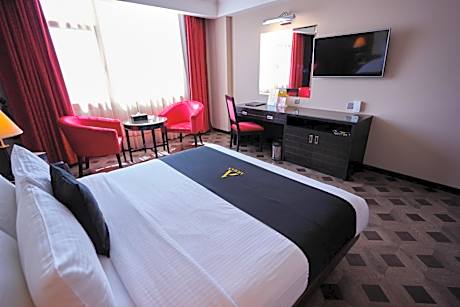 El Arman Hotel Juffair Mall ofrece un servicio impecable y todas las instalaciones necesarias para sus visitantes. Mantenga una comunicación fluida gracias al wifi gratuito del hotel. Organice fácilmente su transporte desde y hacia el aeropuerto con los servicios de traslado del hotel. Descubrir Manama es aún más fácil gracias a los taxis, el alquiler de coches y los servicios de transporte que ofrece el hotel. Para quienes viajen en coche, disponemos de aparcamiento gratuito. Durante su estancia en este fantástico hotel, el atento personal de recepción le ofrecerá una variedad de servicios, como servicio de conserjería, check-in o check-out exprés, consigna de equipaje y cajas de seguridad. Si busca el mejor entretenimiento de la ciudad, solicite ayuda en el servicio de venta de entradas y reservas de tours del hotel. En el hotel, utilice el servicio de tintorería y lavandería para mantener su ropa de viaje impecable, lo que le permitirá traer menos ropa. ¿Desea relajarse? Aproveche al máximo su estancia en el Arman Hotel Juffair Mall con servicios como servicio a la habitación las 24 horas, servicio de habitaciones y limpieza diaria. Para cualquier necesidad de última hora, las tiendas de conveniencia la atenderán con prontitud, sin necesidad de salir. Si desea fumar, encontrará zonas designadas. En el Arman Hotel Juffair Mall, todas las habitaciones cuentan con comodidades y accesorios para garantizar una estancia confortable. Mejore su experiencia en el hotel sabiendo que algunas habitaciones están equipadas con servicio de ropa de cama, cortinas opacas y aire acondicionado para su comodidad. Algunas habitaciones del Arman Hotel Juffair Mall ofrecen elementos de diseño únicos, como una sala de estar independiente. Algunas habitaciones cuentan con servicios de entretenimiento como periódico diario, televisión y televisión por cable, lo que garantiza una estancia agradable. Algunas habitaciones del hotel disponen de nevera, agua embotellada y minibar para satisfacer sus necesidades. En el hotel, algunos baños están equipados con artículos esenciales, como secador de pelo, artículos de tocador y albornoces, lo que garantiza una estancia cómoda. No olvide visitar el elegante salón ejecutivo, donde podrá disfrutar de las lujosas comodidades y el ambiente. Comience el día con un delicioso desayuno disponible cada mañana en el Arman Hotel Juffair Mall. Comience el día sintiéndose renovado y revitalizado mientras disfruta de una deliciosa taza de café de calidad en la cafetería del hotel. En el hotel, encontrará una variedad de deliciosas y fáciles de conseguir para satisfacer su apetito. En el Arman Hotel Juffair Mall, nos comprometemos a satisfacer sus necesidades únicas. Ofrecemos una variedad de opciones de comida, incluyendo alternativas halal para personas con preferencias dietéticas especiales. Cree momentos inolvidables con sus compañeros de viaje a solo unos pasos, en el bar y la discoteca del hotel, para una velada encantadora. En el Arman Hotel Juffair Mall, los visitantes pueden comprar sus alimentos directamente en su alojamiento, lo que garantiza una comodidad y simplicidad excepcionales a la hora de comer. ¿Se le da bien cocinar? Prepare sus propios platos en la zona de barbacoa y la cocina compartida del hotel. En el Arman Hotel Juffair Mall, los huéspedes pueden disfrutar de las encantadoras instalaciones recreativas disponibles para su entretenimiento. Redondee sus vacaciones a la perfección con una visita a masajes, hot tub, salón de belleza, baño de vapor, spa y sauna en sus últimos días. Asegúrese de visitar la piscina del hotel al menos una vez durante su estancia. En el Arman Hotel Juffair Mall, nos esmeramos en garantizar la comodidad de nuestros huéspedes. Disfrute de su bebida favorita en traje de baño junto al bar de la piscina del hotel. Descubra las instalaciones de fitness del hotel para mantenerse en forma y mantenerse en forma durante su escapada.