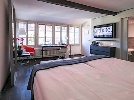 This boutique design hotel in Heidelberg features modern accommodations behind a historic façade. It is located beside the university in the Old Town. Schloss Heidelberg castle is 2625 feet away. The rooms and suites of the Arthotel Heidelberg feature wooden flooring, a flat-screen TV and a bath tub. Free sparkling water is provided on arrival. A rich breakfast buffet is available each morning in the Romer Restaurant. Guests are welcome to relax with a cocktail in the Romer Lounge. During the summer, meals and drinks can be served on the roof terrace or courtyard terrace. On-site parking is provided for an extra fee.