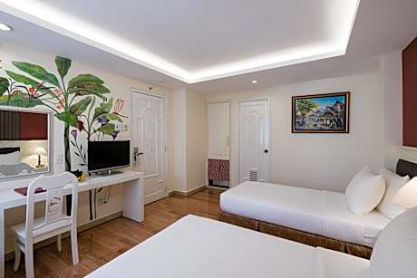 Asian Ruby Center Point Hotel offers top-notch services and amenities, ensuring guests experience utmost comfort.Complimentary internet access is available in the hotel to ensure you stay connected during your visit.Arrange your trips to and from the airport using the hotel's convenient transportation services booking.Discover the wonders of Ho Chi Minh City with ease by utilizing the services provided by taxi and car hire.For guests with their own vehicle, parking facilities are provided.Continuously receive the support you require through front desk amenities such as concierge service, luggage storage and safety deposit boxes.At the hotel, their ticket service and tours is also capable of assisting with booking tickets and securing reservations for entertainment and adventures.Always look your best in your preferred attire with the dry cleaning service and laundry service provided at Asian Ruby Center Point Hotel. Craving relaxation? In-room amenities such as 24-hour room service, room service and daily housekeeping allow you to maximize your time spent inside the room. Due to health concerns, smoking is strictly prohibited within the entire premises of hotel. For the health and well-being of all guests and staff, smoking is restricted exclusively to assigned zones. Accommodations come equipped with all the conveniences required for a restful night's slumber.A selection of rooms feature linen service, blackout curtains and air conditioning to ensure your comfort and convenience.A few chosen rooms are equipped with daily newspaper, television and cable TV to ensure guest amusement. In certain rooms, the hotel offers visitors access to a refrigerator, bottled water, a coffee or tea maker, instant coffee, instant tea and mini bar. Asian Ruby Center Point Hotel offers a hair dryer, toiletries and bathrobes in the restrooms of specific accommodations. A delightful breakfast is the perfect way to begin your day, and at Asian Ruby Center Point Hotel, you can always indulge in a scrumptious meal on-site. All adore a delightful cup of coffee! An on-site coffee shop ensures you can relish a cup of authentic, freshly-brewed coffee every morning -- or whenever you desire it.Allow your journey to be free from the pangs of hunger! On-site eateries offer delicious and accessible meal choices.An evening spent at hotel's bar can offer as much enjoyment as venturing out with your fellow travelers. At Asian Ruby Center Point Hotel, experience the ease of having groceries brought straight to your accommodation through their efficient service. Are you a fan of preparing your own dishes? You'll certainly appreciate the onsite BBQ facilities and shared kitchen for your culinary needs. Asian Ruby Center Point Hotel provides a superb assortment of leisure amenities for guests to enjoy. Conclude your days in complete tranquility by paying a visit to massage and spa for ultimate relaxation.