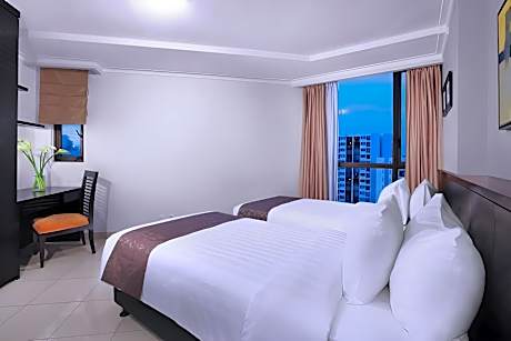 Horison Ultima Suite & Residence Rasuna provides flawless service and all the necessary facilities for visitors.Stay connected with your associates, as complimentary Wi-Fi is available during your entire visit. To facilitate your arrival and departure, you can pre-book airport transfer services prior to checking in.The hotel offers taxi, car hire and shuttle amenities for your ease in navigating around Jakarta.When arriving by car, you'll be grateful for the on-site complimentary parking at hotel.The hotel offers reception amenities including concierge service, express check-in or check-out, luggage storage and safety deposit boxes to ensure a comfortable stay for guests.Should you require assistance, the ticket service and tours can also aid in booking tickets and securing reservations at the finest shows and events in the vicinity. Whether it's an extended stay or simply needing fresh attire, laundromat, dry cleaning service and laundry service provided by hotel ensures your cherished travel garments stay spotless and accessible. Your stay will be comfortable with the presence of 24-hour room service, room service and daily housekeeping as an in-room amenity for your relaxation and enjoyment. Need something at the last minute? The convenience stores has you covered, ensuring your requirements are met without any inconvenience.Smoking is permitted solely in the specified smoking zones allocated by hotel. In order to ensure the utmost level of relaxation, the guestrooms feature an inviting design and are equipped with all basic necessities, creating a delightful stay experience.To ensure a pleasant stay, a selection of rooms at hotel come furnished with linen service and blackout curtains, all designed with your ease in mind.At Horison Ultima Suite & Residence Rasuna, various room configurations are available, featuring separate living room and balcony or terrace in some rooms. In select rooms, visitors can enjoy a touch of amusement with the availability of television and cable TV for their entertainment needs. Within specific rooms, a refrigerator, bottled water, a coffee or tea maker, instant coffee, instant tea and mini bar is conveniently available for your use.Understanding the significance of bathroom facilities in enhancing visitor contentment, hotel offers a hair dryer, toiletries and bathrobes within a few chosen chambers. Start your day stress-free at Horison Ultima Suite & Residence Rasuna as breakfast is made available for you on the premises.How about kicking off each day of your getaway with a delicious cup of coffee? At the hotel, relish in the invigorating taste of a freshly brewed, excellent coffee. Various excellent meal offerings at hotel ensure that enticing and easily accessible options are constantly available.Upon your arrival, don't miss experiencing bar for enjoyable in-house evening entertainment.Visitors wishing to create their personal culinary delights will appreciate the on-site shared kitchen provided at this establishment. Throughout the day, engage in the entertaining activities available at Horison Ultima Suite & Residence Rasuna.Unwind effortlessly each day by exploring the massage, conveniently situated within the hotel.