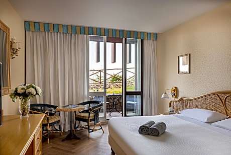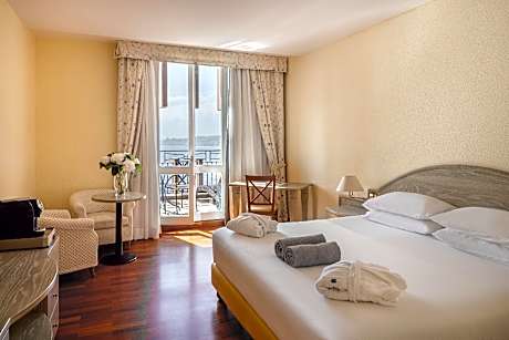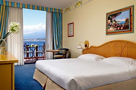 UNA Hotels Capotaormina is perched on a rock below Taormina and is surrounded by the sea, offering an amazing view of the fantastic Giardini Naxos Bay and Isola Bella Island. This pleasant building is set against the unusual background of Mount Etna with its snowy peaks, and all the hotel rooms are equipped with a balcony. Classic rooms offer garden views, superior rooms offer a full sea view. Staying at the Capotaormina you can enjoy spending pleasant hours on the private beach, accessible through a elevator carved into the rock. The beach and the hotel's sea-water swimming pool are equipped with sun beds, parasols and beach towels, for your relaxation and enjoyment. The regenerating experience continues in the gym with trainer and beauty salon. The property also provides a jeweler's and an outdoor car park with limited places. A free shuttle bus to/from Taormina center is also available, and boat excursions can be booked during summer. The hotel's 3 restaurants serve international, Sicilian and Mediterranean cuisine.