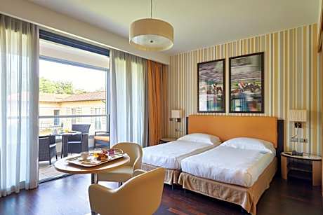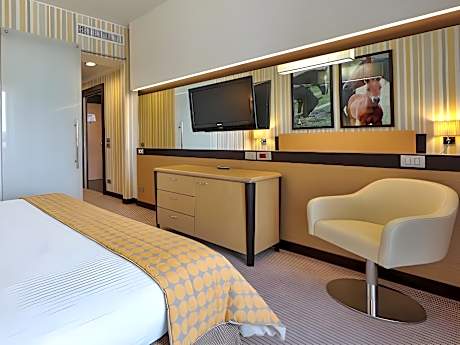 With a fresh design combining style and comfort, UNAHOTELS Varese offers great modern amenities and stunning views of the mountain, the hills and the horse racing tracks. UNAHOTELS Varese enjoys a spectacular location at the feet of the Italian Alps. Surrounded by some of the most beautiful Italian and Swiss lakes, the hotel is near the largest nature park of Italy, Val Grande National Park. All guest rooms and apartments offer large private balconies. The hotel features its own fitness center, meeting rooms for up to 1200 participants, lots of parking space and banquet facilities. The hotel’s own Derby Restaurant serves delicious regional and international specialties in a warm and cozy atmosphere. The restaurant overlooks the hills and the racing tracks. Varese Train Station, located 1.6 mi away, offers connections with Milan.