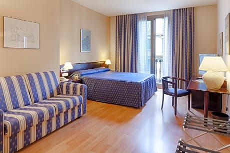 Hotel Atlantis can be found less than 100 yards from Plaza Catalunya and Universitat Metro Station in Barcelona. It offers attractive rooms with flat-screen satellite TV and free Wi-Fi. The hotel features lounge areas with sofas where guests can relax. Car rental can be arranged at the 24-hour front desk. A hot and cold breakfast buffet is served in the hotel dining room. The air-conditioned rooms at Atlantis include a spacious marble bathroom complete with a hairdryer. There is also a laptop safe. The Gothic Quarter is less than a 10 minute walk from Atlantis Hotel. The Picasso Museum and El Born district are also a short walk away.