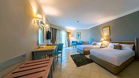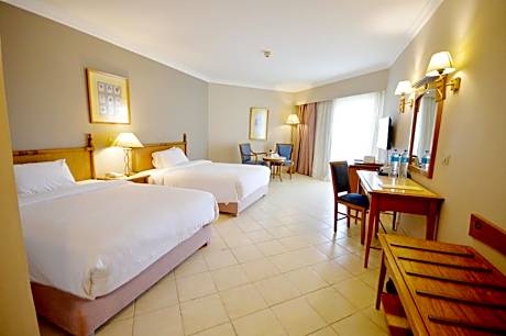 Occupying a beachfront location, this resort offers spacious and modern rooms overlooking the Red Sea or swimming pool. The hotel faces Tiran Island, and is just a 20-minute drive from Naema Bay. Including a private balcony, all light rooms at Oriental Sharm El Sheikh come with a mini-bar, safe and fan. Each has a modern private bathroom with a bathtub and shower. A breakfast buffet is available at the Mediterranean-themed restaurant with its soft lighting and cozy seating corners. Room service is also available at Sharm El Sheikh Aurora Oriental Resort. The large gym offers guests the opportunity to enjoy a work-out. Alternatively, visitors can relax by the swimming pool or unwind in the lobby. The 24-hour reception staff can arrange a shuttle service to Sharm El Sheikh International Airport, 6.2 mi away. This resort is located infront of the La Strada vital entertainment center of Nabq area.