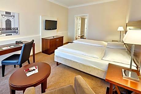 Este hotel de 4 estrellas superior, antigua casa de huéspedes del emperador Francisco José, se encuentra a 10 minutos a pie del Palacio de Schönbrunn y del Zoológico de Viena. Ofrece un elegante restaurante, jardín privado y wifi gratuita. El restaurante del Austria Trend Parkhotel Schönbrunn Wien sirve cocina clásica austriaca y especialidades vienesas en un ambiente histórico. Por la noche, el bar Gloriette ofrece una amplia selección de bebidas. Las amplias habitaciones con aire acondicionado combinan instalaciones modernas con un ambiente tradicional y elegante. Incluyen TV por cable, minibar y caja fuerte. La estación de metro de Hietzing está a solo 50 metros del Parkhotel Schönbrunn y ofrece conexiones directas con el centro de Viena en 15 minutos. Hay aparcamiento disponible en el hotel por un suplemento. Desde noviembre de 2014, el Parkhotel Schönbrunn cuenta con la Etiqueta Ecológica Austriaca para el Turismo gracias a diversas medidas de sostenibilidad implementadas por el hotel.