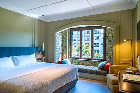This elegant, air-conditioned room features satellite TV and carpet or parquet flooring. Rooms are soundproofed and have a mini-bar, work desk and a safe.
