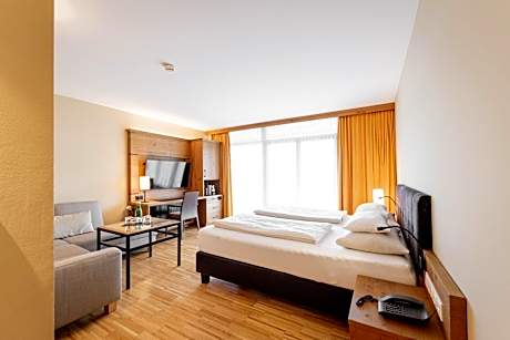 The 4-star superior Avita Resort Bad Tatzmannsdorf offers direct access to the Avita Thermal Spa with 15 swimming pools and 24 saunas. It also features a private spa for hotel guests only, a gym (daily open from 07:00), and a bar and a restaurant with terrace. Rich half-board consisting of a breakfast buffet with egg dishes and products from the region, a salad, soup and snack lunch buffet and dinner buffet with a salad bar is available every day. The restaurant offers Austrian and international cuisine. The air-conditioned rooms of Avita Resort include a private bathroom with bathrobes, spa towels and slippers, a mini-bar and satellite TV. Free WiFi is provided in the entire building and the entrance to the Avita Thermal Spa is included in the rate. There is a natural swimming pond in the garden. E-bikes and bicycles can be hired free of charge. Tennis courts and soccer arena are 820 feet away. Golf & Country Club Bad Tatzmannsdorf is 1.2 mi from the property. The private spa area which is exclusive for hotel guests only consists of an indoor and outdoor pool, a steam bath, a panorama sauna, an infrared cabin, and a bar with tea and fruits. The town center can be reached in a 10-minute walk. A bus stop is 2297 feet away and the Oberwart Shopping Center is 3.1 mi from the Avita Resort Bad Tatzmannsdorf.