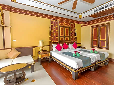 Great care is taken to ensure guests experience comfort through top-notch services and amenities. When arriving by car, you'll be grateful for the on-site complimentary parking at hotel. The hotel offers reception assistance, including safety deposit boxes, to ensure guest satisfaction. To ensure the well-being and convenience of all visitors, smoking is strictly prohibited throughout the entire hotel.In order to ensure the utmost level of relaxation, the guestrooms feature an inviting design and are equipped with all basic necessities, creating a delightful stay experience.To ensure a pleasant stay, a selection of rooms at hotel come furnished with blackout curtains and air conditioning, all designed with your ease in mind.Several chosen accommodations at Ayodhaya Palace Beach Resort Krabi have a balcony or terrace incorporated into the room design.Selected rooms offer in-room amusement like television as a source of entertainment for guests to enjoy.Within specific rooms, a refrigerator and bottled water is conveniently available for your use. Understanding the significance of bathroom facilities in enhancing visitor contentment, hotel offers a hair dryer and toiletries within a few chosen chambers. Start your day stress-free at Ayodhaya Palace Beach Resort Krabi as breakfast is made available for you on the premises.