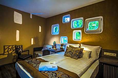 Bambara Hotel is surrounded by a forest and provides African-style décor and atmosphere. The hotel offers spacious rooms with a flat-screen TV and a mini-bar. Guests can relax in the large wellness area or sunbathe on the terrace in the garden. Every room comes with a balcony, a sofa bed and a bathroom with amenities and a shower or a tub. Free wired internet is available in each room. Wi-Fi is provided free of charge in public areas. Hotel Bambara’s spa area consists of an herbal sauna and different pools. Guests can relax in the outdoor hot tub. Massages and beauty treatments are available on request. The on-site restaurant serves African and international specialties and vegetarian dishes. A buffet breakfast is served each morning. Children can play in the on-site games room or have fun at Bambara Hotel’s meerkat yard. Views of the Bükk National Park are provided on site. Eger is just a 10-minute drive away and private parking is possible free of charge at the hotel. License Number(s): SZ19000582