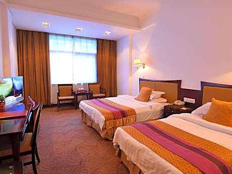 Experience an abundance of unparalleled facilities and features at Baodao Exhibition Center Hotel. Share your photos and respond to emails at your convenience, thanks to the free Wi-Fi internet access offered by hotel. Taxi and car hire offerings at the hotel simplify arranging your excursions, explorations, and additional activities in Wuyishan.Visitors can take advantage of complimentary parking directly at the hotel.Reception services such as concierge service, express check-in or check-out, luggage storage and safety deposit boxes are available to accommodate your requirements. Should you desire access to the top entertainment in the city, assistance can be provided by the hotel's tours.Traveling with minimal baggage is achievable at Baodao Exhibition Center Hotel, as the hotel's dry cleaning service and laundry service ensures your garments stay fresh. Room amenities like 24-hour room service and room service contribute to making a perfect selection for your stay. The hotel maintains a completely smoke-free zone, providing a breathable atmosphere. Each accommodation at Baodao Exhibition Center Hotel is thoughtfully created and adorned to provide visitors with a comfortable, home-like atmosphere. In certain rooms, the hotel offers blackout curtains and air conditioning for guest convenience and satisfaction.In select rooms, guests at the hotel can enjoy top-notch in-room entertainment with television and cable TV available for their convenience. Rest assured, in a few chosen rooms, you will find the convenience of a refrigerator, bottled water and a coffee or tea maker at your disposal. Maintain your cleanliness and comfort using a hair dryer and toiletries available in select guest restrooms. Begin your holiday on a high note. At Baodao Exhibition Center Hotel, your mornings are greeted with a delightful, free breakfast.Experience the delight of a fresh morning by savoring excellent coffee at the cafe situated within hotel. Should you prefer not to venture out for a meal, the enticing culinary choices at hotel are always available for your satisfaction.Experience an unforgettable evening with your fellow travelers just a short distance away, at hotel's nightclub.Indulge in the numerous pursuits available at Baodao Exhibition Center Hotel.Unwind after a long day by stopping by massage, spa and sauna to rejuvenate your senses.Each day at hotel, immerse yourself in the invigorating waters of the pool, perfect for a rejuvenating plunge or a series of revitalizing laps. For individuals who don't want to skip their exercise routine, visiting the hotel fitness center ensures you maintain your vitality and wellness.