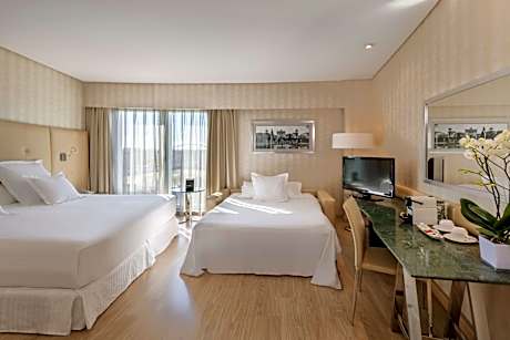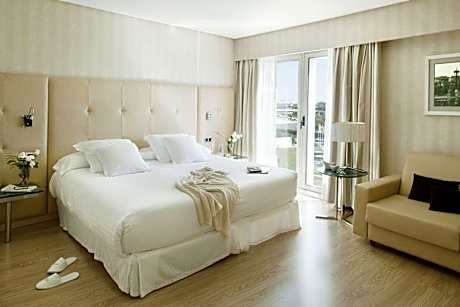 This smart, 5-star hotel is set in 3 contemporary buildings on Isla de Cartuja, a 5-minute drive from Seville’s city center. It features a seasonal outdoor pool, a heated pool and gardens, 656 feet from the Isla Magica Theme Park. The elegant rooms at Barceló Renacimiento feature contemporary décor. They all include a flat-screen TV with satellite channels, and a private bathroom. Free Wi-Fi is available throughout the hotel. A buffet breakfast with show cooking is served in the Colon restaurant at Barceló Renacimiento. National and international cuisine is available at the Gastro Bar, that features a terrace. Arrozante Restaurant t's the perfect place to sample a wide selection of rice dishes, paellas and fideuá. Swimming pool bar (seasonal) Other services at the hotel include a free shuttle to the city center during Easter week, as well as to the fairgrounds during the April Fair. The Giralda, Alcázar and Seville Cathedral are 10 minutes away by car from Barceló Renacimiento, while the Torre del Oro is a 5-minute drive away. Seville Airport is 5.6 mi away.