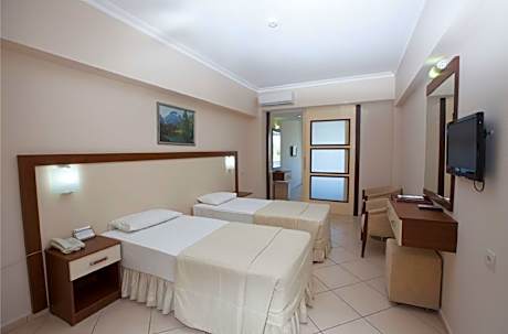 Located in the Aegean coast, this seafront hotel offers a private beach, 3 large outdoor pools with water slides and spa facilities. Accommodations is provided by air-conditioned rooms with free WiFi. The elegant rooms of Batihan Beach Resort & Spa are decorated in soft colors to create a warm setting. They all include a balcony with sea, pool or garden views. Some rooms offer a patio opening out to the pool. There are 3 restaurants, 2 bars and a nightclub on site. The main buffet restaurant serves all meals. Guests can enjoy Chinese, Mexican or Italian food at the a-la-carte restaurant. Delicious cocktails are available at the hotel’s bars. Complimentary five o'clock teatime and afternoon snack food services are provided. The spa center includes a Turkish bath, sauna and an indoor pool. Guests can also have massages or beauty treatments. There is a well-equipped fitness center for sports-minded guests. The hotel offers an Aqua Park with 3 water slides. A mini club for 4-12 ages, a basketball, tennis, beach volley and a mini golf court are also available. Kusadasi city center is 4.3 mi from the property. Izmir Adnan Menderes Airport is 47 mi away. Hotel has a private airport transfer on site. Please check the availability from the hotel reception.