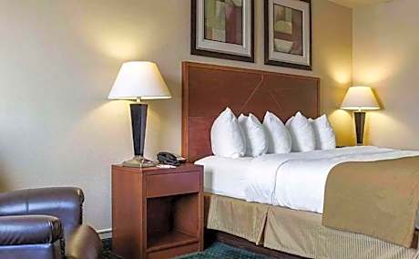 El hotel Quality Inn & Suites goza de una ubicación céntrica, a menos de seis kilómetros de Jamestown College, el centro comercial Jamestown Mall, el Hospital Jamestown, el puerto deportivo y camping Lakeside, el centro comercial Park Plaza Mall y el centro comercial Buffalo Mall. Este hotel de Jamestown, Dakota del Norte, se encuentra a solo diez kilómetros del Centro de Investigación de Vida Silvestre Northern Prairie. El lago Chase y el Refugio Nacional de Vida Silvestre Arrowwood también se encuentran cerca. Otras atracciones populares cercanas incluyen el Salón de la Fama de los Deportes de Dakota del Norte, el Búfalo Más Grande del Mundo, el Museo Nacional del Búfalo, el circuito de carreras Jamestown Speedway, Frontier Village y el complejo arqueológico Fort Seward. Esta ciudad natal de Louis L'Amour y Peggy Lee está rodeada de naturaleza, con excelentes opciones para observar aves, pescar, cazar, navegar, nadar, esquiar a campo traviesa y andar en motonieve. En las inmediaciones del hotel encontrará varios restaurantes. No olvide visitar TAPPS, el salón para no fumadores del hotel. Los huéspedes de este hotel disfrutarán de desayuno continental, periódico diario, llamadas locales y café gratuitos. Los huéspedes también disfrutarán del gimnasio, la gran piscina cubierta climatizada con tobogán de 33 metros y el hot tub. Los viajeros de negocios apreciarán la comodidad del centro de negocios, el acceso a servicios de fax y el acceso gratuito a internet inalámbrico de alta velocidad en todas las habitaciones. Las salas de banquetes y reuniones tienen capacidad para 400 personas, ideal para la mayoría de eventos y funciones empresariales. Todas las espaciosas habitaciones incluyen televisores de pantalla plana de 42 pulgadas con HBO, cafeteras, secadores de pelo, planchas y tablas de planchar. También disponemos de suites con microondas y refrigerador. No olvide preguntar por las suites familiares y con bañera de hidromasaje.