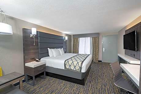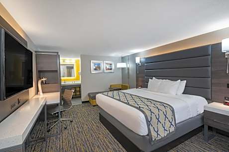 Offering a seasonal outdoor pool and free WiFi, Baymont by Wyndham Murfreesboro is located 2.8 mi from downtown Murfreesboro, Tennessee. A flat-screen TV is featured in each room at Baymont by Wyndham Murfreesboro. A microwave and refrigerator are provided as well as a desk and ironing facilities. The bathroom has a hairdryer and complimentary toiletries. A daily breakfast is offered. Guests can enjoy the on-site barbecue facilities, bar, and fitness center. For convenience, a 24-hour front desk and parking are offered. Nashville International Airport is 24 mi away.